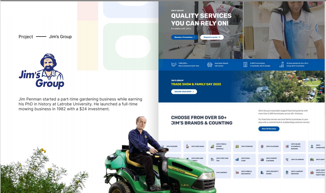 Jim Penman started a part-time gardening business while earning his PhD in history at Latrobe University. He launched a full-time mowing business in 1982 with a $24 investment.